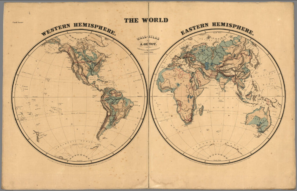 O mundo e os hemisférios Ocidental e Oriental (Crédito da imagem: David Rumsey Map Collection, David Rumsey Map Center, Stanford Libraries. Fonte: Internet Archive)