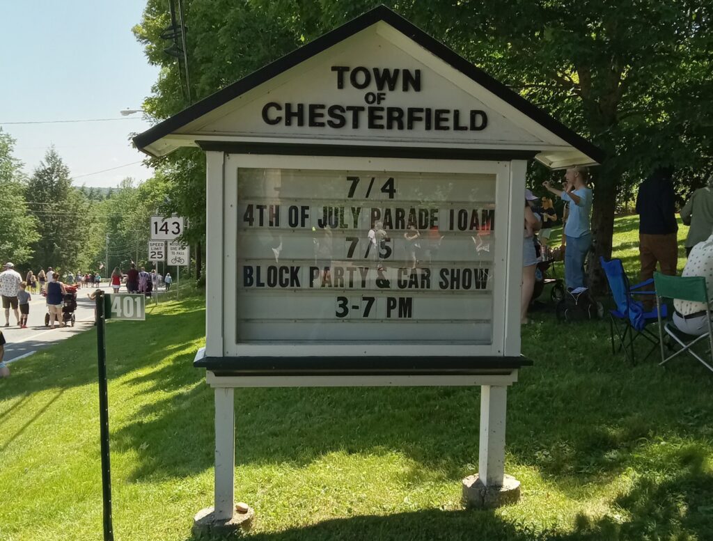 Aviso da Parada de Quatro de Julho, em Chesterfield, MA, EUA (Crédito: Tatiana Teixeira/Arquivo pessoal)